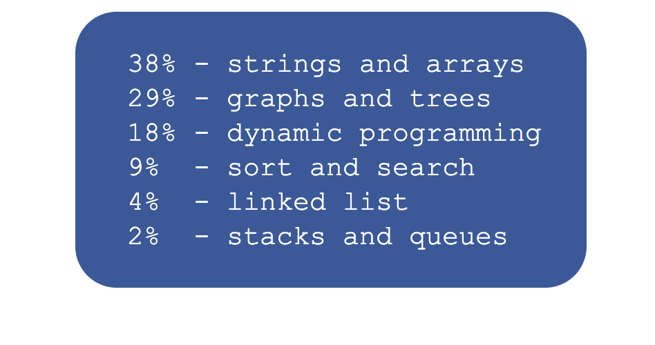 As you can see to the right, Facebook focuses mostly on arrays and strings. These are essential skills to master.