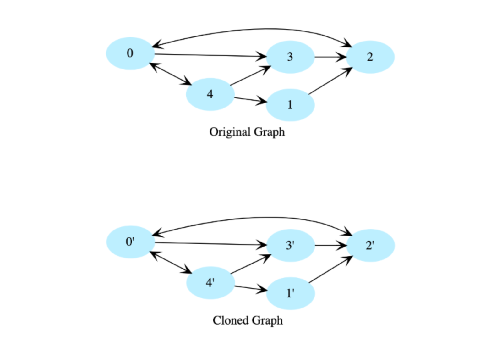 We use depth-first traversal and create a copy of each node while traversing the graph. To avoid getting stuck in cycles, we’ll use a hashtable to store each completed node and will not revisit nodes that exist in the hashtable.