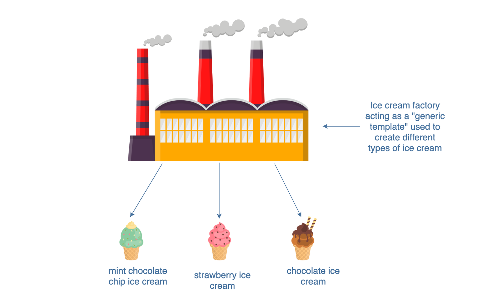 Consider a real-life ice cream factory, which acts as a template to produce different types of ice cream according to the requirements: