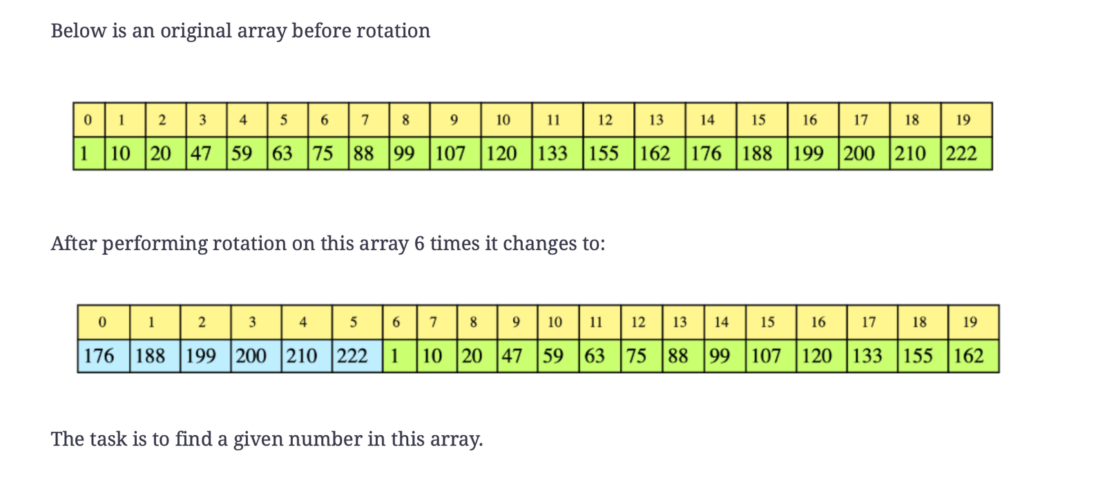 View the search rotated array solution in C++, Java, JavaScript, and Ruby.