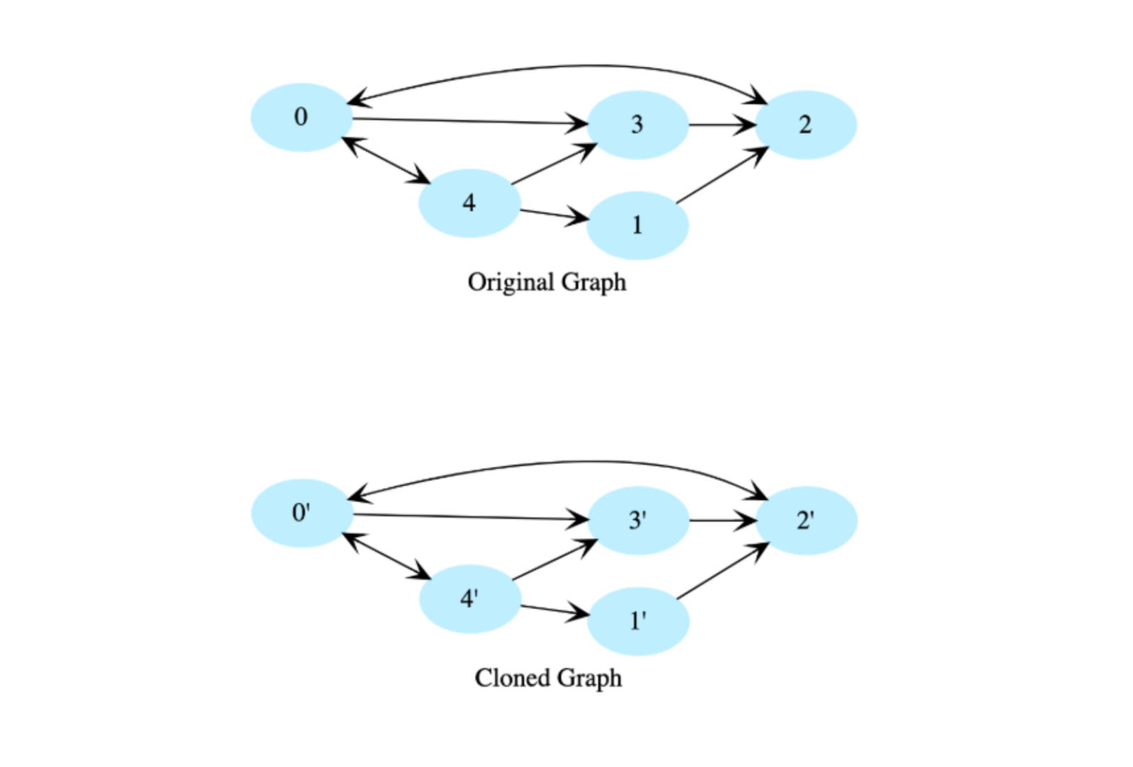 Let’s look at the below graphs as an example. If the input graph is where V is set of vertices and E is set of edges, then the output graph (cloned graph) G’ = (V’, E’) such that V = V’ and E = E’. We are assuming that all vertices are reachable from the root vertex, i.e. we have a connected graph.